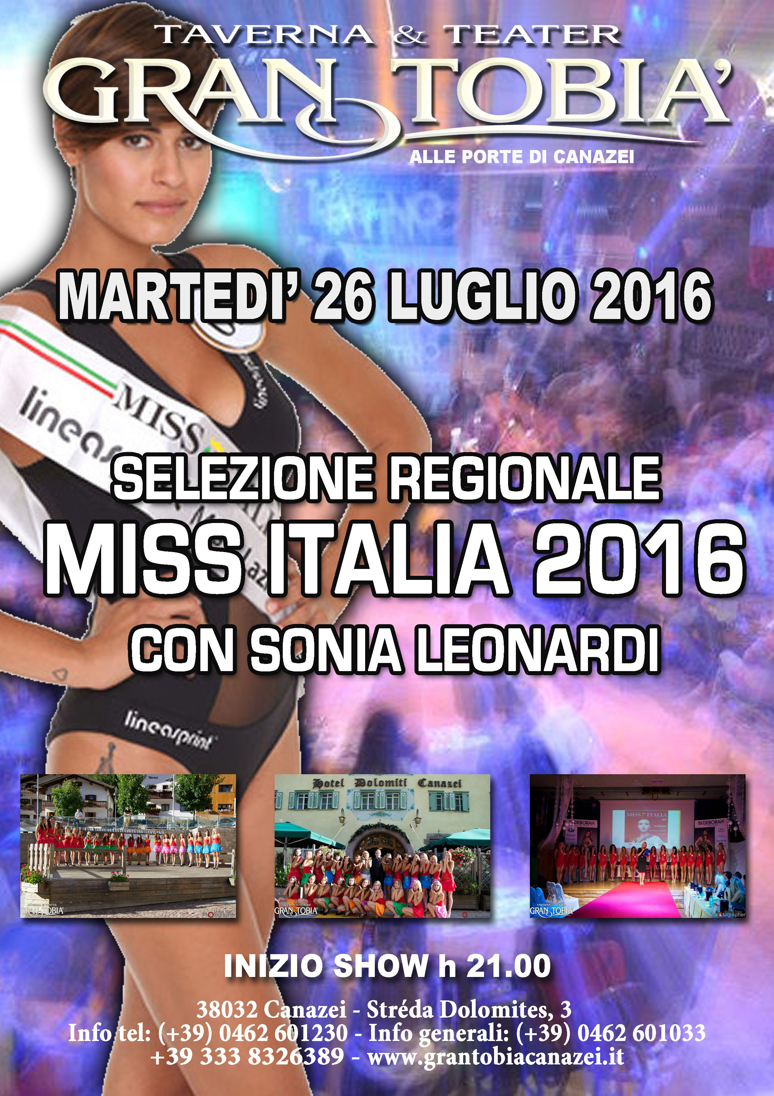 Il Gran Tobia Taverna & Teater Ospita L'evento Miss Italia presentato da Sonia Leonardi a Canazei sulle Dolomiti in Val di Fassa